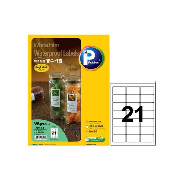 • [프린텍 애니라벨] 라벨지 V8920-10_방수 / 21칸 / 10매