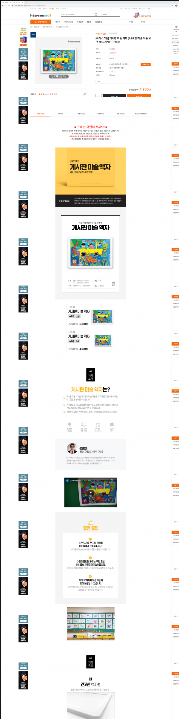 [아이스크림] 게시판 미술 액자 (A4/8절/미술 작품 보관 액자/게시판 꾸미기) > 아이스크림몰